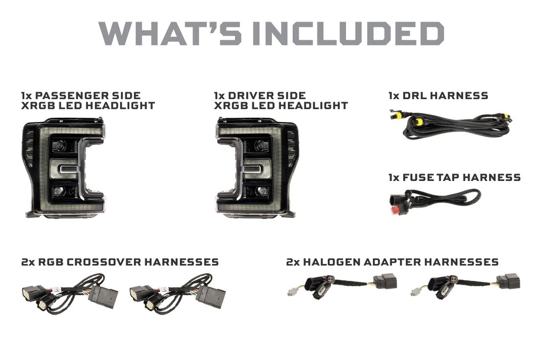 • Headlights : One Pair 17-19 Ford Super Duty XRGB (1x Right Hand / Passenger Side Headlight, 1x Left Hand / Driver Side Headlight)
