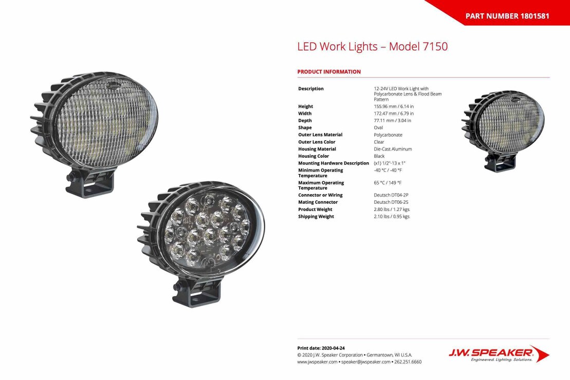 1801581 : JW Speaker: 7150F-12/24V PC Flood Beam w/12" wires