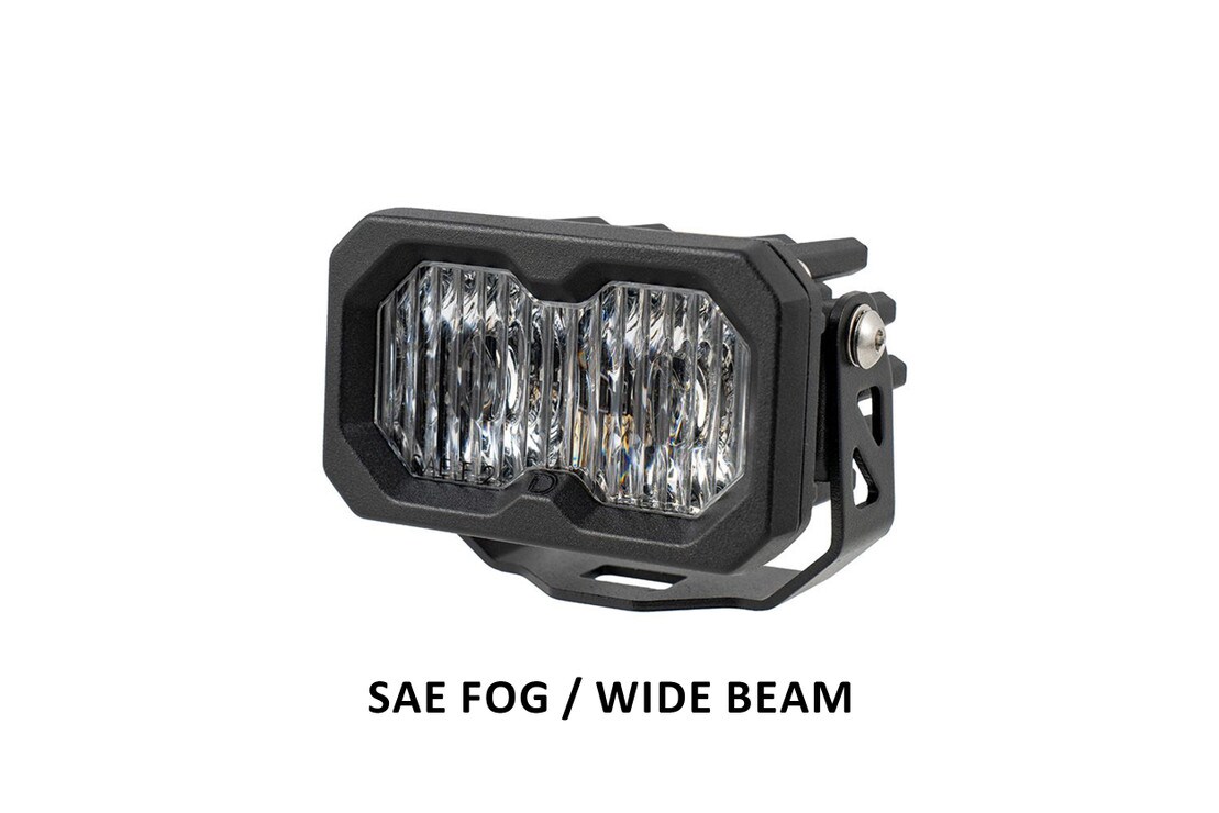 SAE Fog/Wide uses Diode Dynamics' distinctive FineLine optic, which provides an exceptionally wide pattern. The SAE Fog/Wide optic shines with a 90x10 degree pattern to fully illuminate the area directly in front of your vehicle.