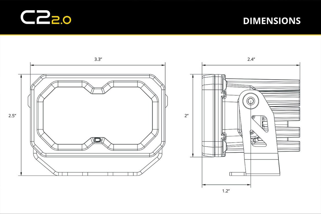 Diode Dynamics Stage Series C2 2.0 Introducing the next generation of compact LED lighting, the Stage Series C2 2.0 LED Pod! Building on the popularity of the original C2 LED Pod, the newly redesigned C2 2.0 packs even more power, light output, and versatility into the same 2-inch footprint. With its compact design, the C2 2.0 is a go-to for tight mounting spots–roof racks, roll bars, bumpers, A-pillars, you name it. Despite its small size, the new Max option is the most powerful two-inch pod on the market at 3900 raw lumens!