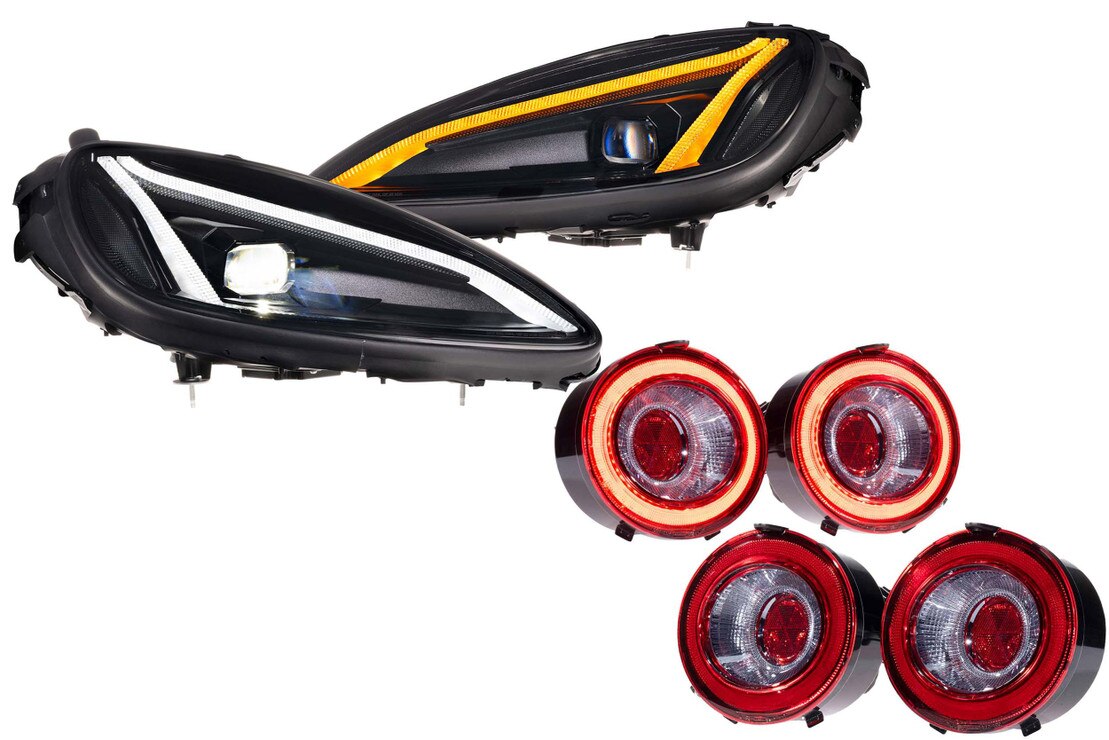 - C8-Inspired Design: Bright Bi-LED projectors with full LED daytime running lights and sequential turn signals.